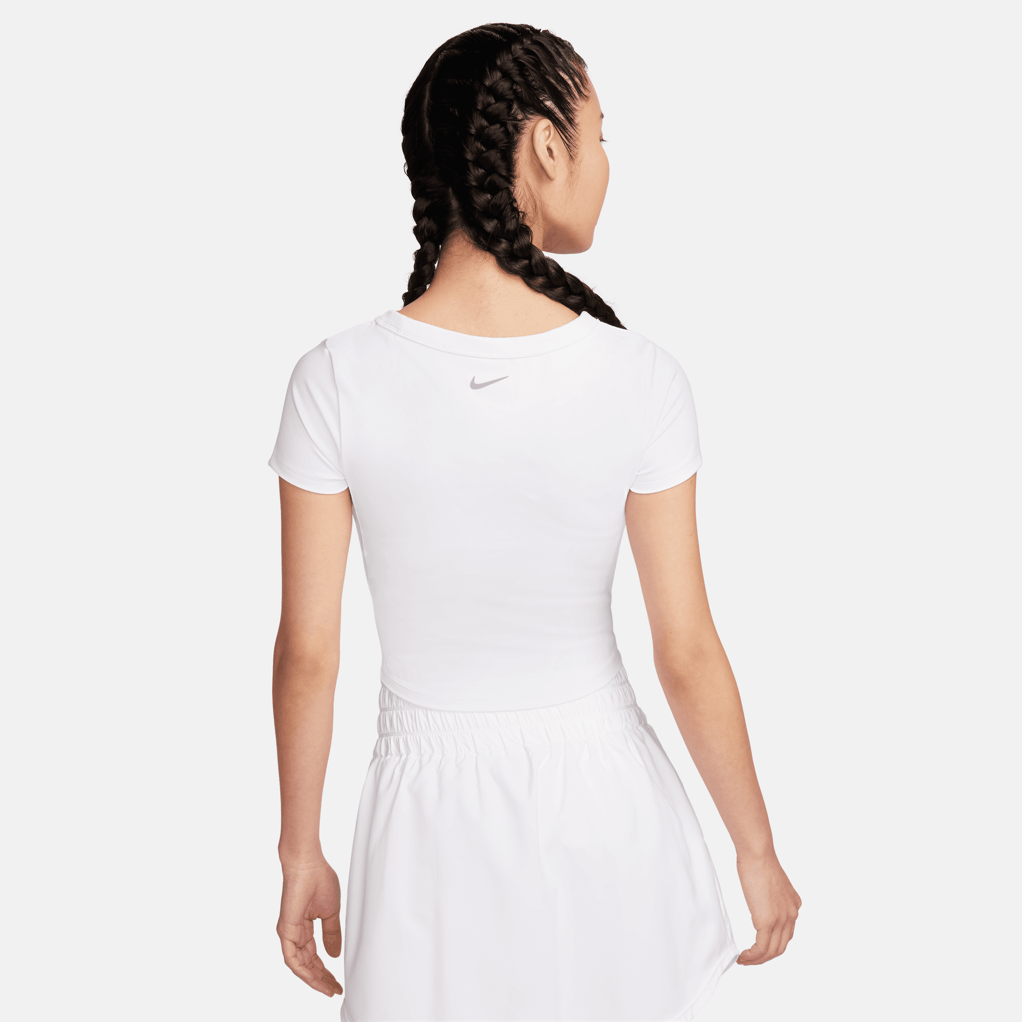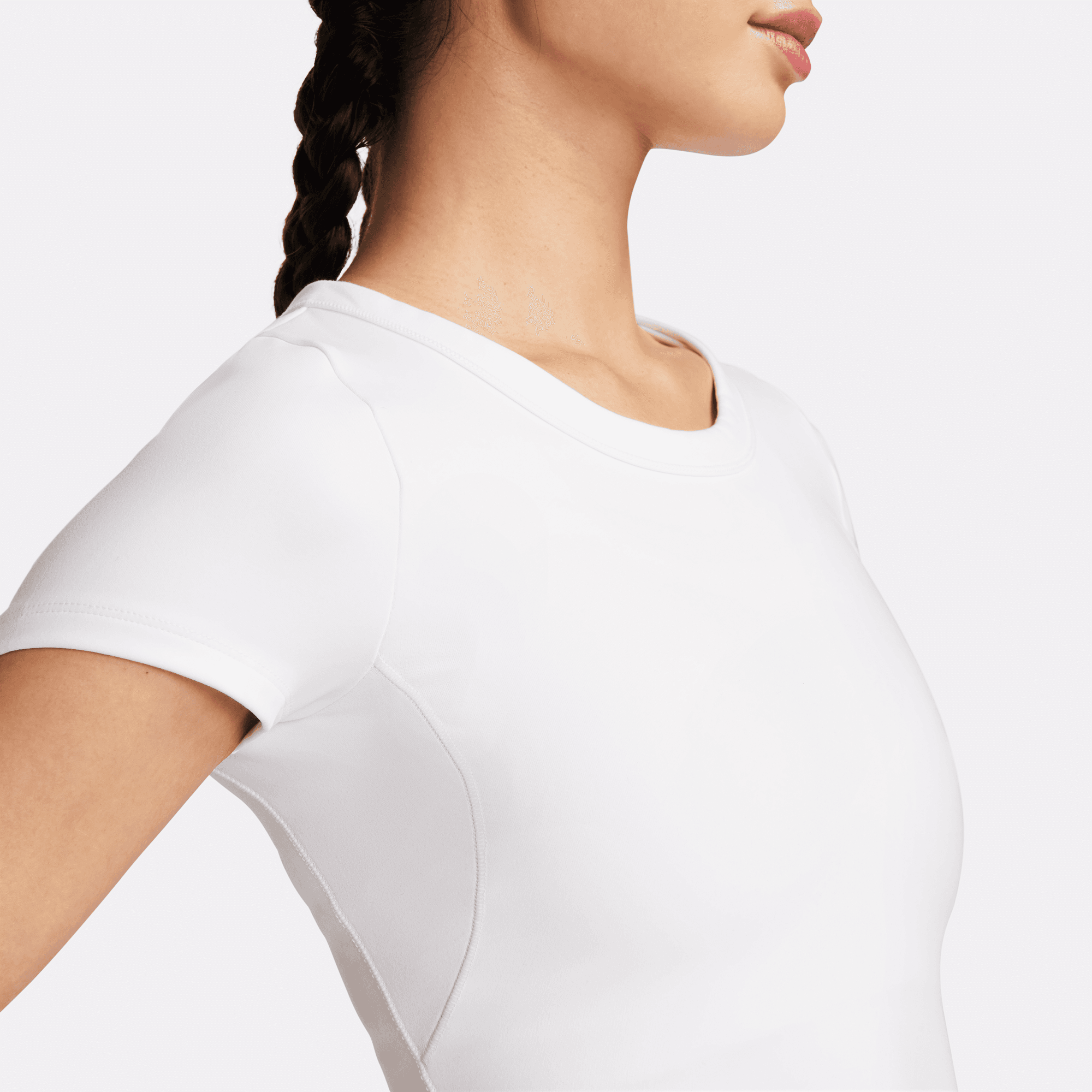 Up for a workout or down to chill, this Nike One Fitted top is ready for whatever you are. Midweight, peachy-soft fabric stretches with your every move and dries quickly. Slightly cropped and snug, it's ready to meet your favorite high-waisted leggings for a head-to-toe look that you can feel confident and comfortable in from your morning stroll to your evening wind-down—and at all the stops in between.