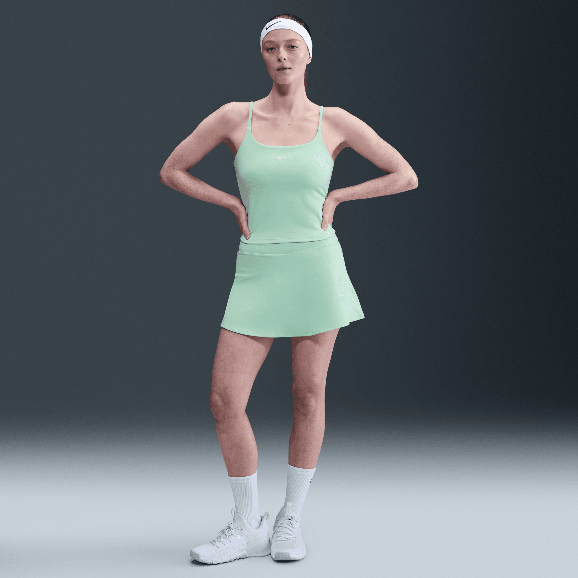 Nike One works for it all. Midweight and peachy soft, this tank top stretches with your every move and dries quickly. Its fitted design includes a shelf bra and adjustable straps for a comfortable layer of coverage.