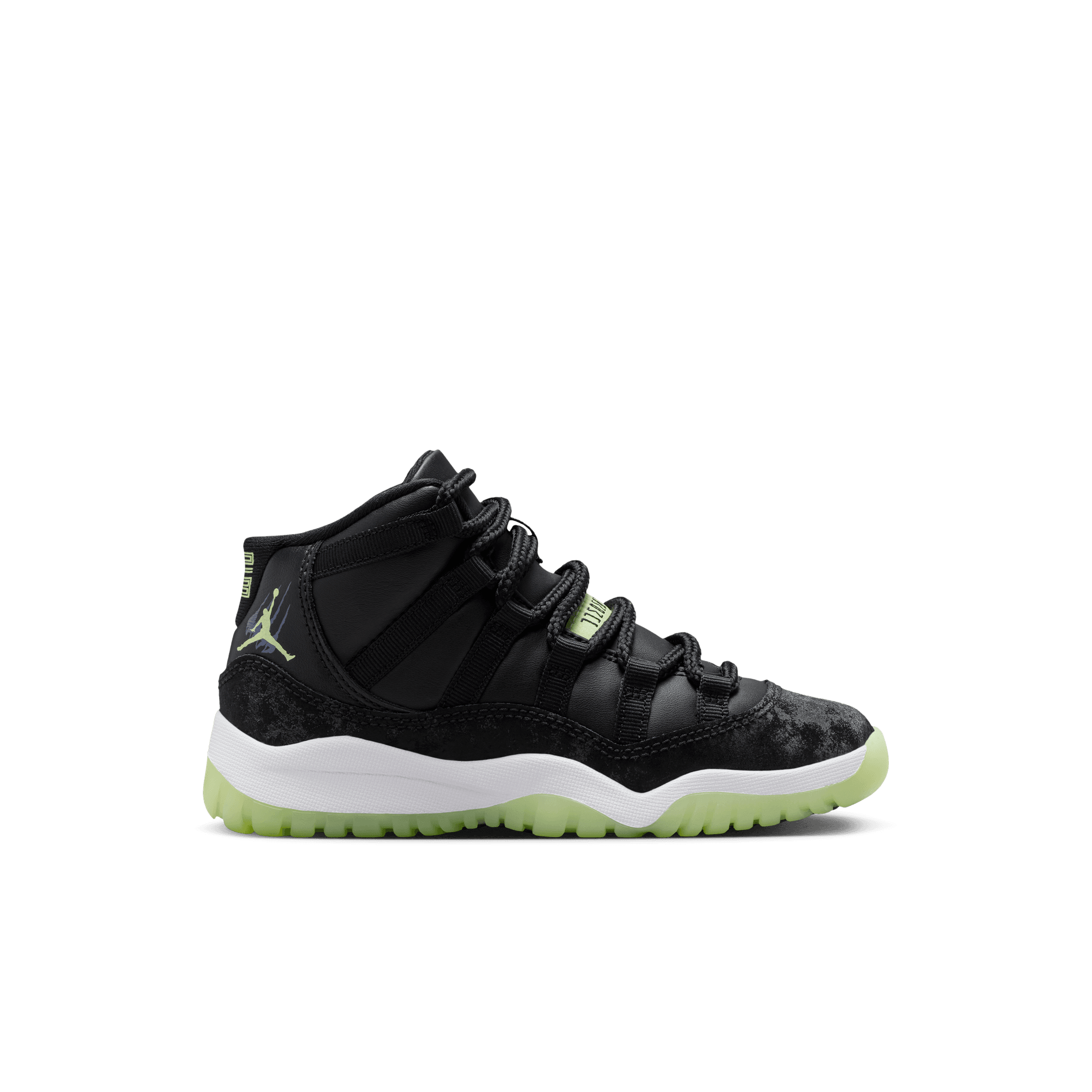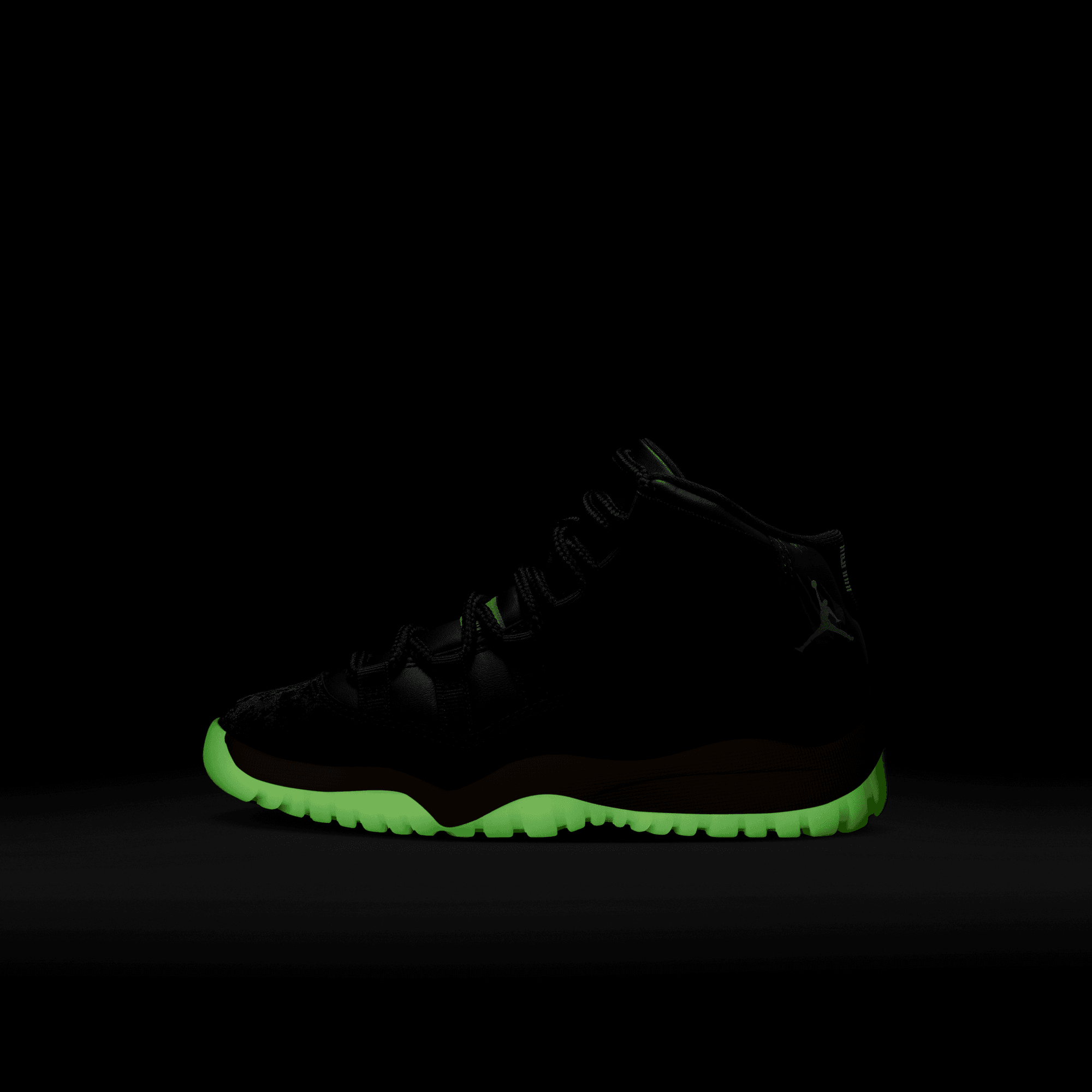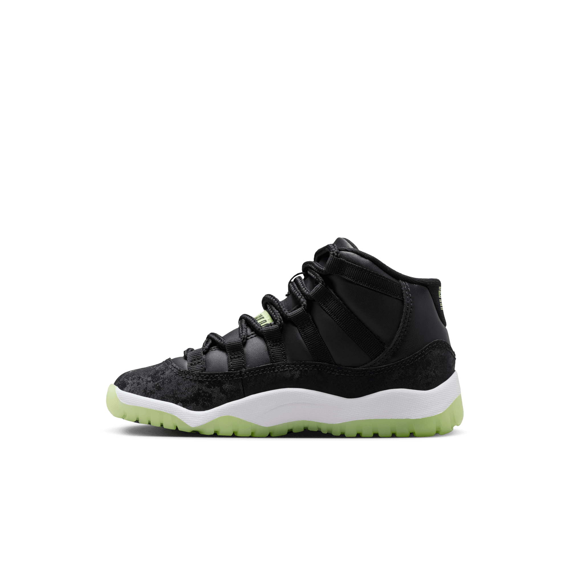 Light up the playground after dark. This edition of the eternally popular AJ11 brings you sleek style with real and synthetic leather, breezy textiles, soft velvet accents and glow-in-the-dark details.
