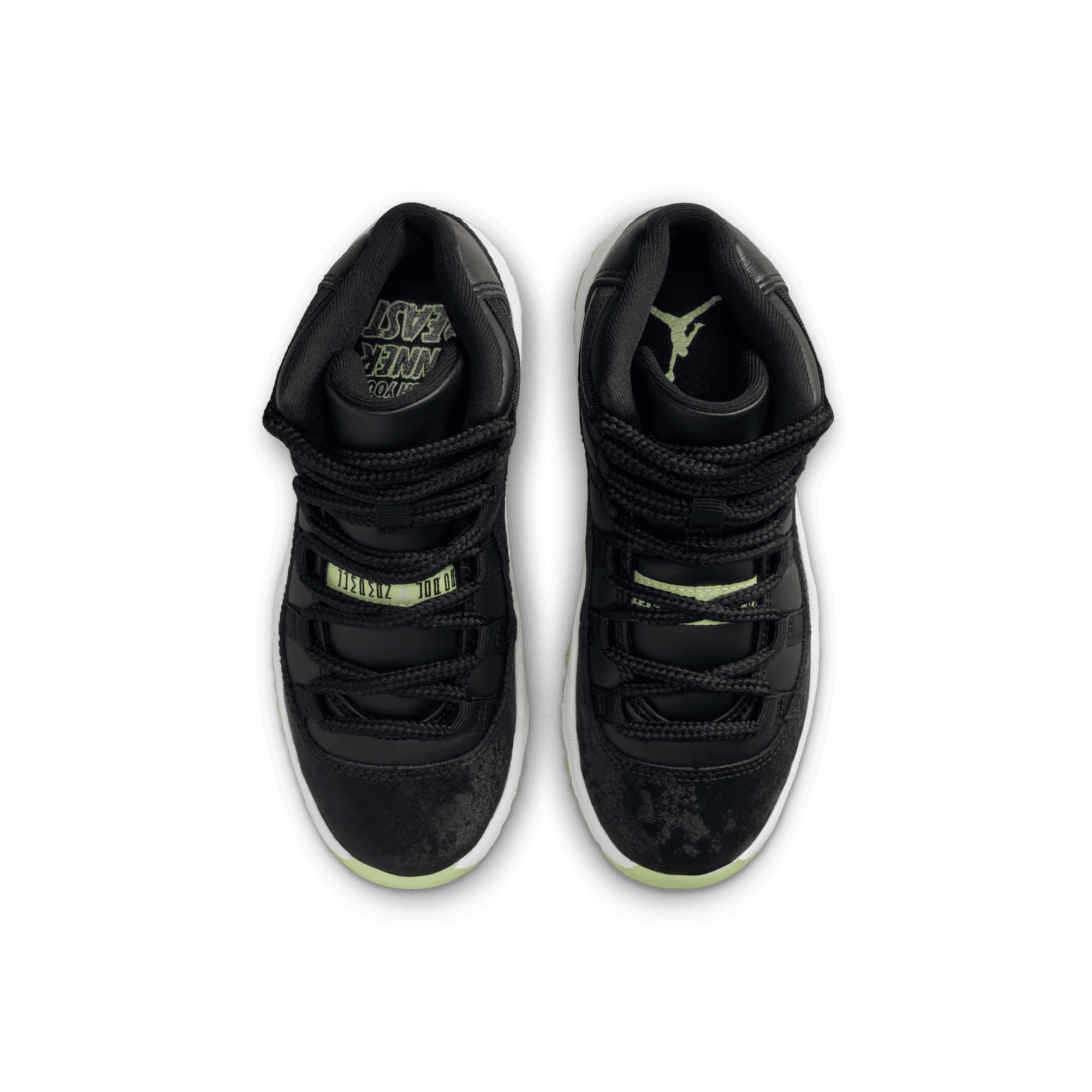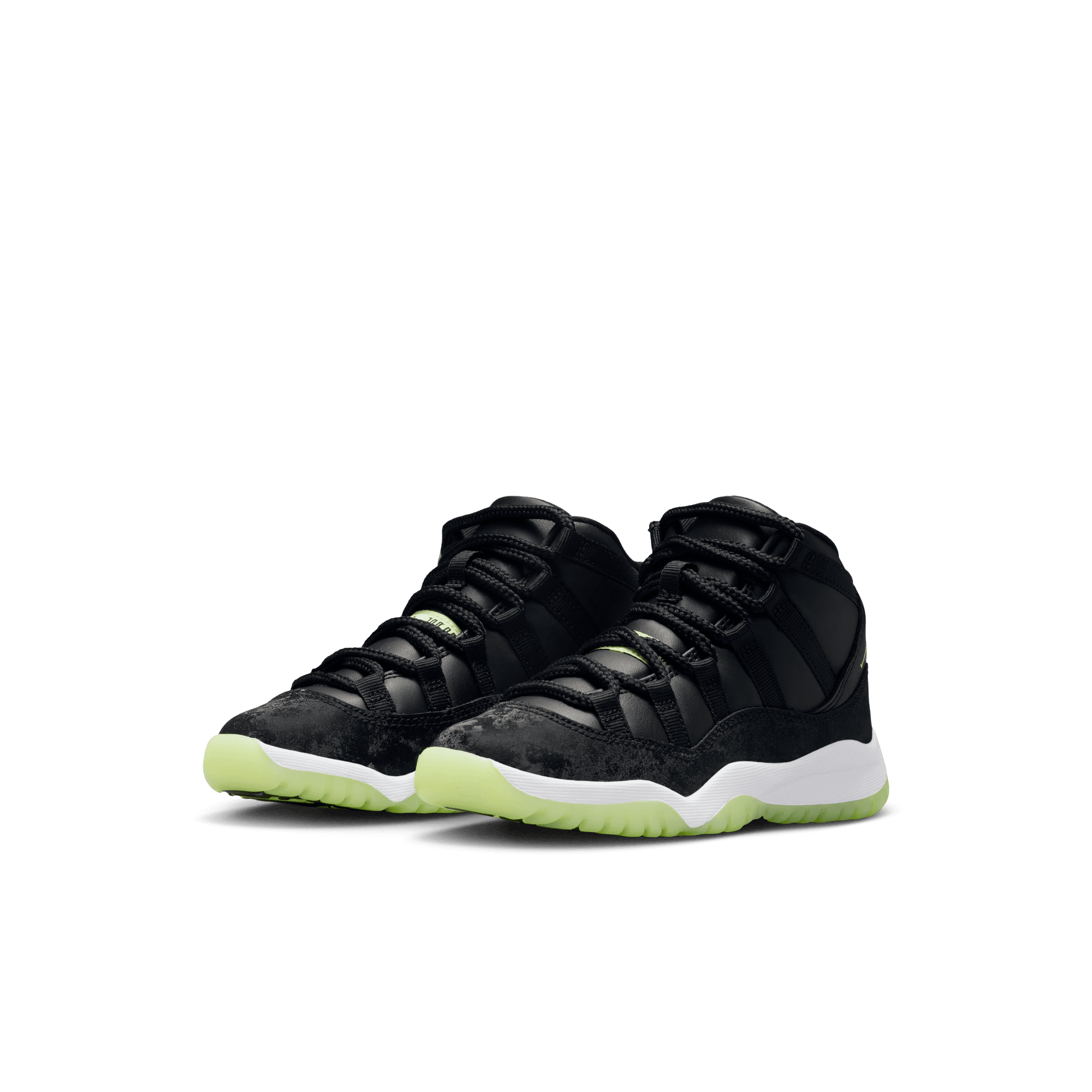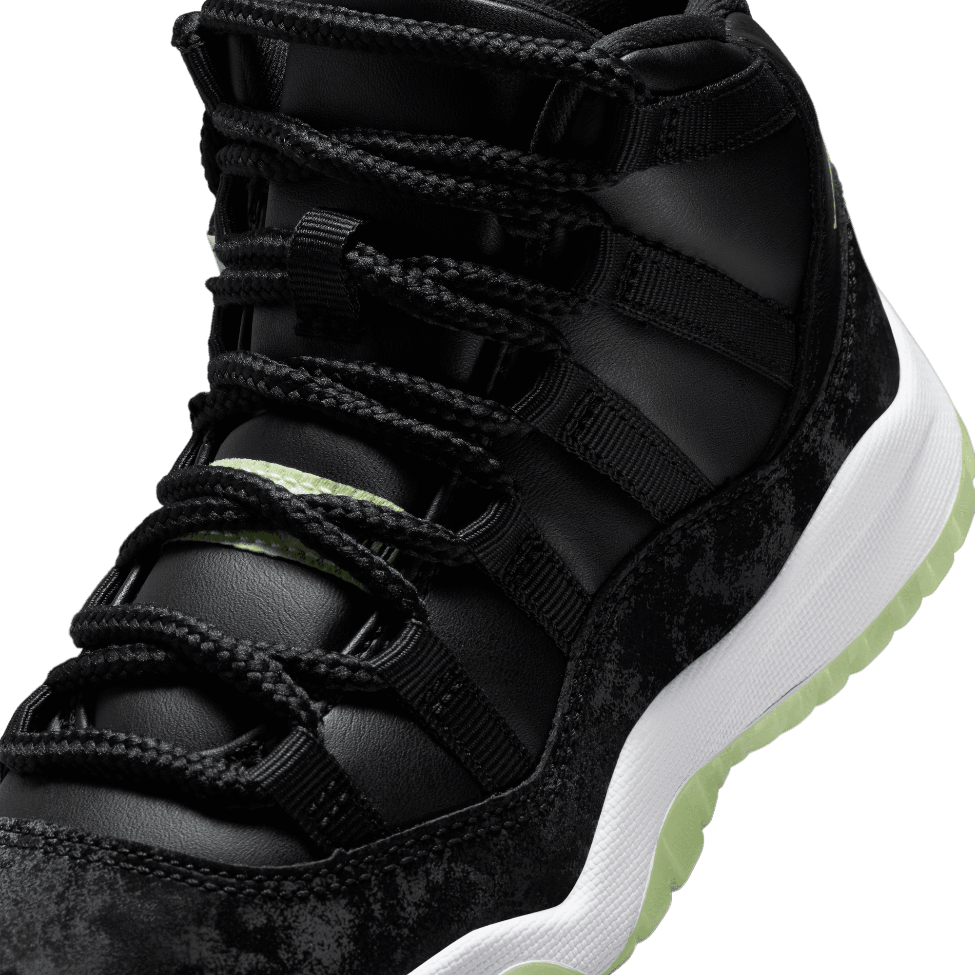 Light up the playground after dark. This edition of the eternally popular AJ11 brings you sleek style with real and synthetic leather, breezy textiles, soft velvet accents and glow-in-the-dark details.