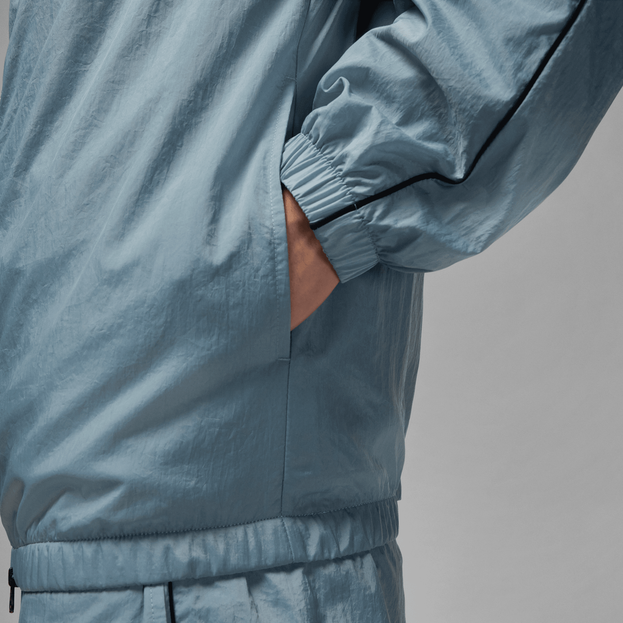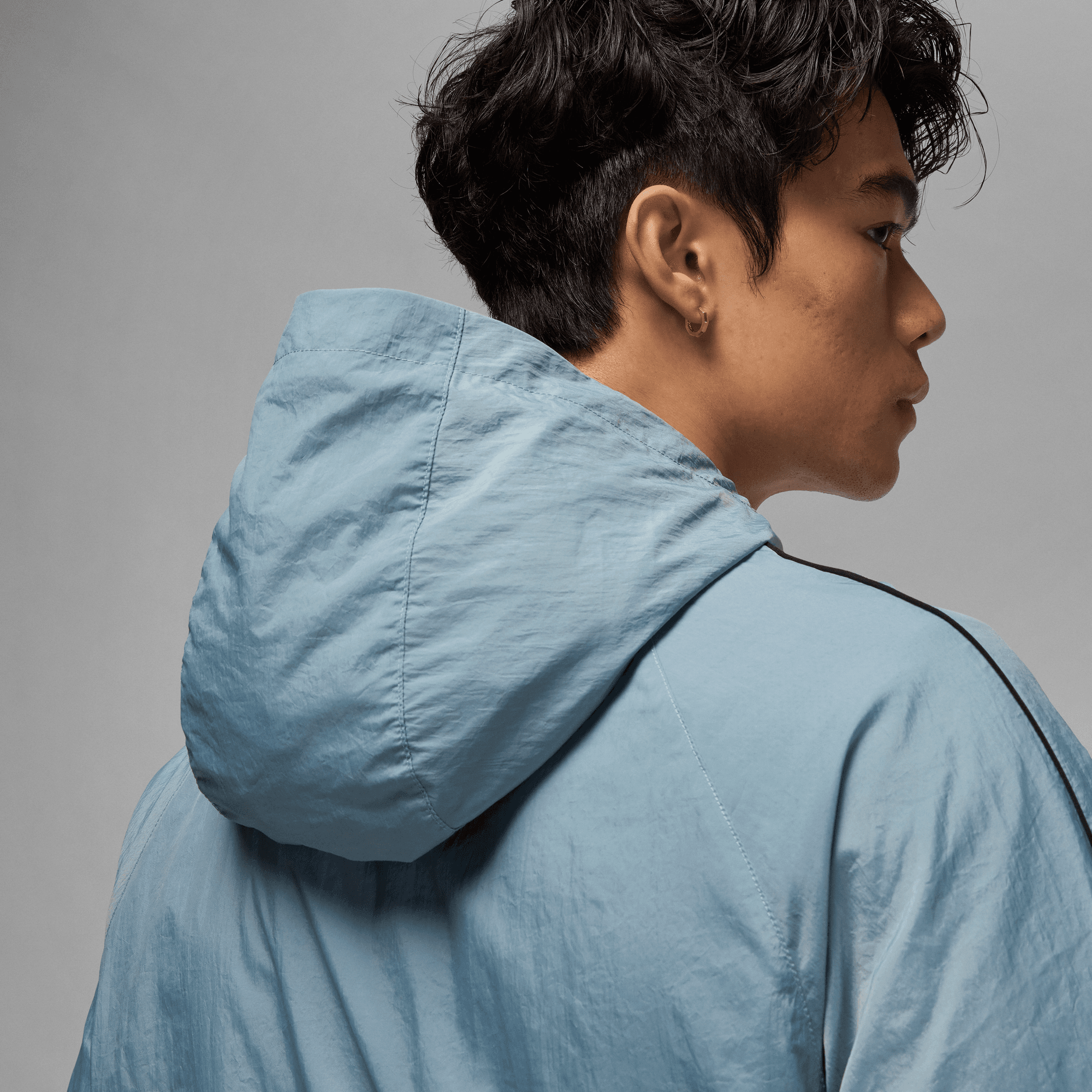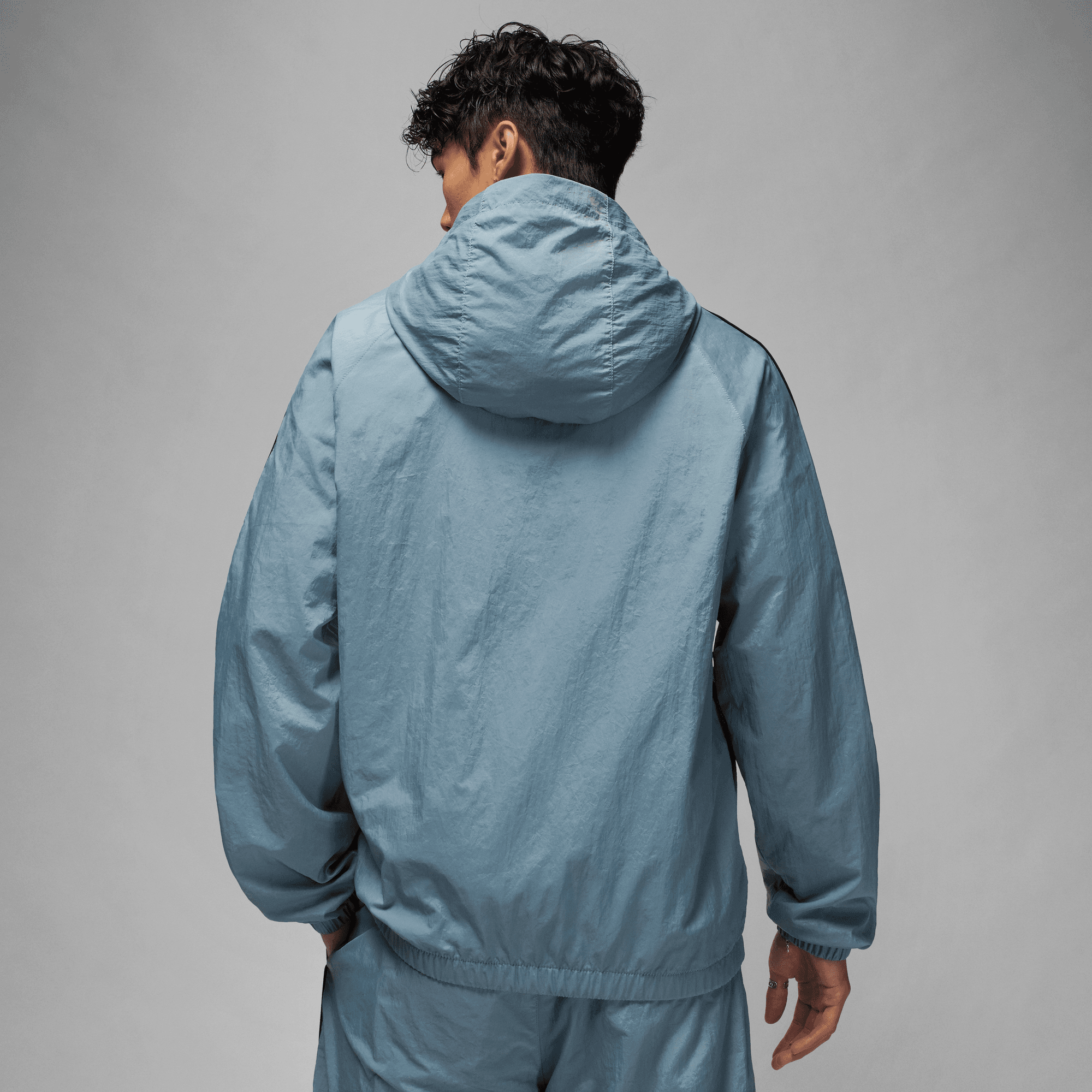 Lightweight, crinkled nylon gives this hooded jacket a classic tracksuit look, with subtle piping that nods toward early Jordan Brand looks. We lined the inside with mesh to keep it comfortable and breathable.