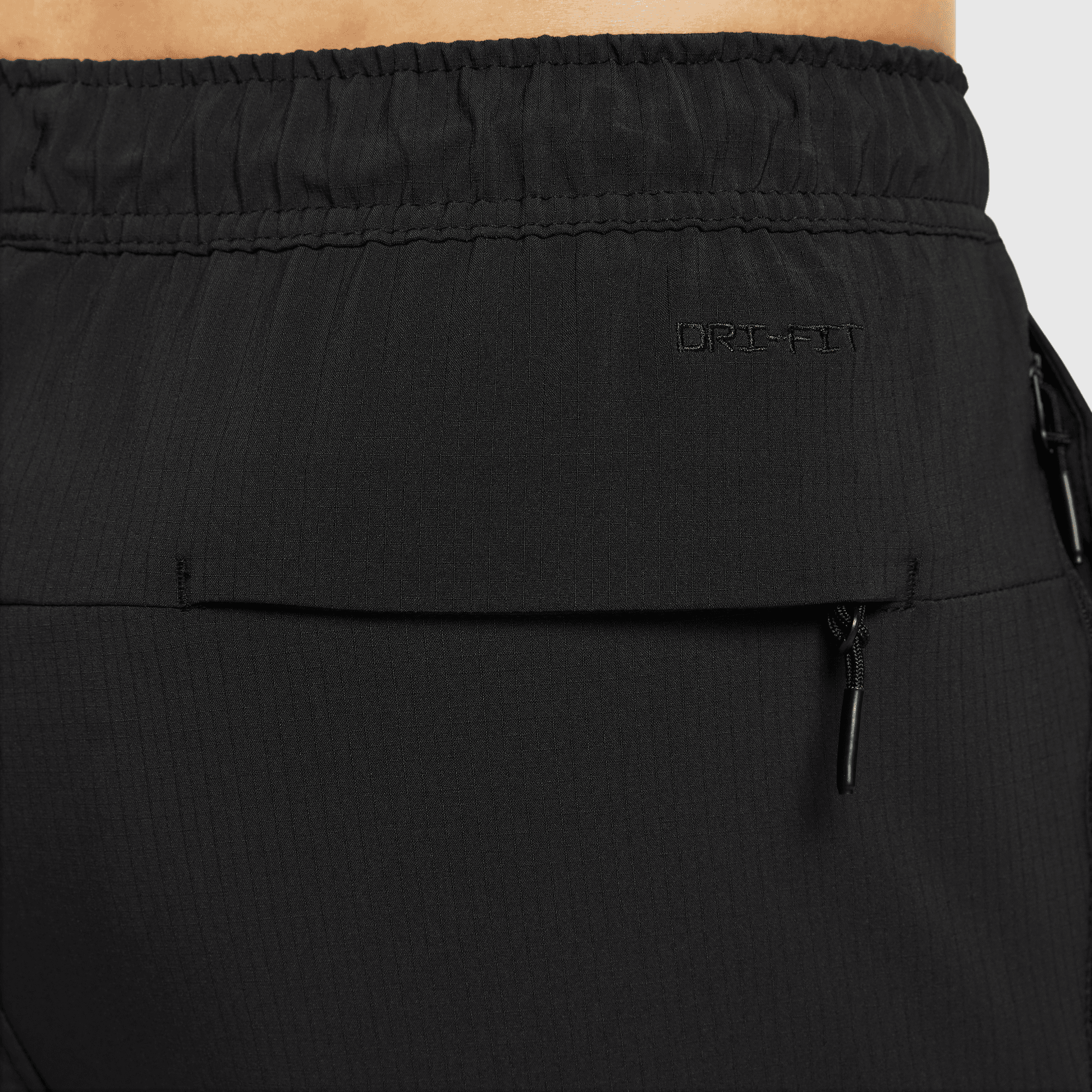 Elastic waistband with drawcord provides a secure fit without digging in.