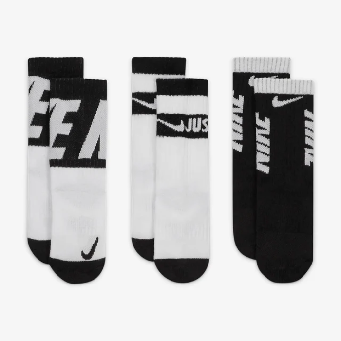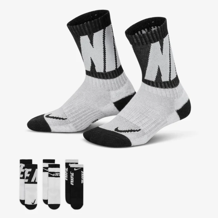 Supportive footwear begins with what's inside your kid's shoes. These socks feature a breathable mesh upper and the ribbed arch support band helps with balance and to prevent or relieve pain. Comfy cushioning at the bottom, heel and toe helps absorb impact during activity and quick-drying, moisture-wicking Dri-FIT technology helps keep feet cool and dry during play.