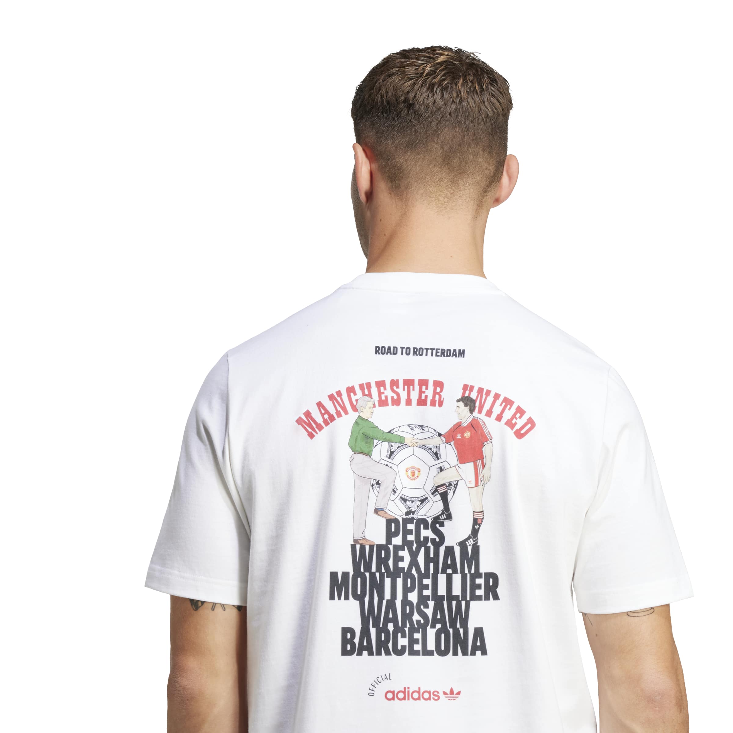Manchester United became kings of Europe's cup winners in 1991 and this adidas football tee is part of a collection commemorating that special victory. Its all-cotton build and classic ribbed crewneck will keep you comfortable while you're backing today's talented squad. A large graphic on the back displays the cup final's programme cover and the cities the triumphant team graced on their way to victory.