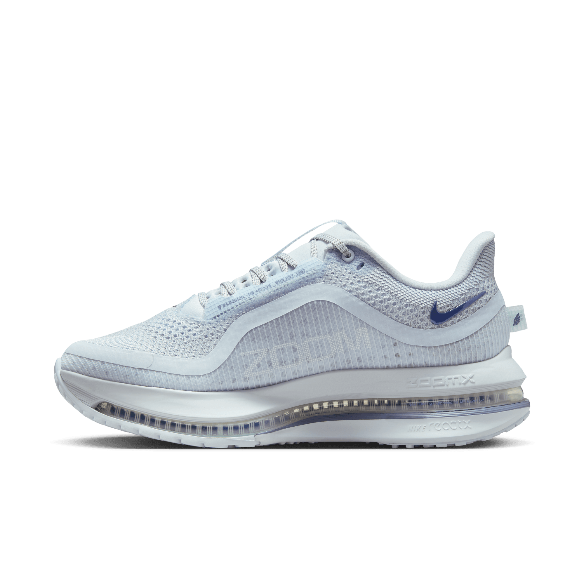 ReactX foam, 13% more responsive than previous React technology, sits at the bottom of the ZoomX foam and Air Zoom cushioning. It offers a smooth and balanced ride.
